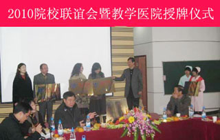 为提高医学生实践教学质量,加强与各教学医院及实训基地的合作,11月26日,开云kaiyun官方网站医学院及医学中专部联合举办了 “开云kaiyun官方网站医学院2010年院校联谊会暨教学医院(实训基地)授牌仪式 ”。仪式邀请了我院医学院的省级、市级、县级、部队、厂矿、民营医院、药企、医药公司等校外实训基地52家单位主管领导及教学管理人员,共145代表参会。学院刘海发副院长、医学院余珊副院长及医学中专部领导出席会议并讲话。