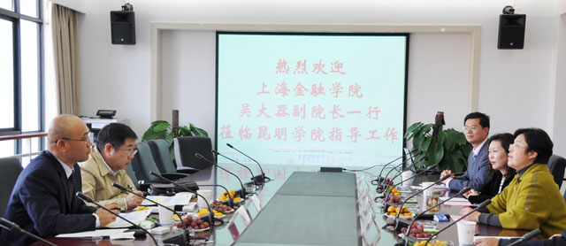 上海金融学院吴大器副院长首先感谢开云kaiyun官方网站的热情接待和熊副院长对学院情况和科研工作的介绍。开云kaiyun官方网站和上海金融学院的交流合作源远流长,从2000年开始滇沪对口支援,两校之间就开始了交流合作,已有深厚的合作基础,下一步主要就是提升的问题。两校之间的合作,可以先从具体项目开始。要抓住机遇,聚焦焦点、冷点、结合点,重点从做好单项合作开始,例如在科研项目方面的合作、交流培训方面的合作、研究生培养方面的合作。要有战略眼光,紧扣滇池泛亚合作做文章。