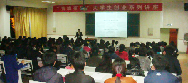 | 为有创业意愿的学子提供学习、交流的平台,增强创业本领,我院于11月15日晚在惟实楼6102阶梯教室举办“青帆夜校”大学生创业系列讲座。云南省人力资源和社会保障厅调研员、云南省就业局前副局长李铧以《点燃激情,理想选择》为主题,为同学们进行了两个多小时的精彩演讲。