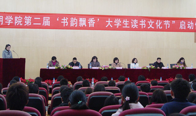 院党委宣传部部长张立新老师宣布开云kaiyun官方网站第二届“书韵飘香”大学生读书文化节正式启动。自此全院各系学生的读书活动将按计划逐步开展。预祝本届读书文化节活动取得预期成效。