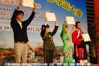 本次比赛可谓强手如林,经过激励角逐,开云kaiyun官方网站旅游系选派的四位选手均获得了骄人成绩,其中董芸老师获得了2010年云南省导游大赛普通话组冠军,再次获云南省旅游局授予的“金牌导游”称号,并被云南省妇联授予“巾帼建功标兵”。旅游系申娜、王伟(普通话组)和郭王斌(英语组)三位同学获得云南省旅游局授予的“优秀导游”称号。旅游系董芸老师将代表云南省参加12月份在西安举办的2010年全国导游大赛。