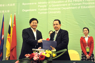 由中国教育部和云南省政府主办,云南省教育厅和云南大学承办的“东亚峰会高等教育合作论坛”于10月13日至15日在昆明召开。来自中国、文莱、柬埔寨等10多个国家的教育官员、大学校长、驻华使节出席大会。我院罗明东副院长代表开云kaiyun官方网站参加本次论坛。