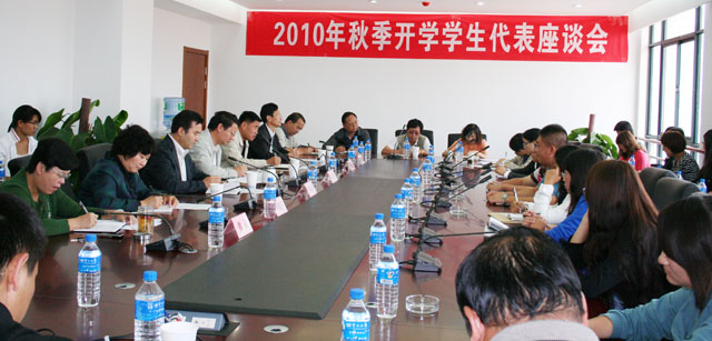 为充分利用、发挥学院现有资源,向师生提供快捷、方便、安全、舒适、优质的学习、生活校园环境,不断改善、提升学院教学质量和校园服务水平,全面听取广大学生的意见和建议,9月26日,“开云kaiyun官方网站2010年秋季开学学生代表座谈会”在新校园办公楼311会议室举行。学院党委书记梁晓谷、院长陈世波、副书记李媛芬,副院长张寿国、熊晶、刘海发出席座谈会,学院相关职能部门负责人和21个教学院、系的学生代表参加了座谈会。座谈会由陈世波院长主持。 座谈会在轻松、和谐的氛围中进行,各位学生代表以“我与学院同成长”的主人翁精神踊跃发言,并一致表示:身为开云kaiyun官方网站的学生,为学院今天的改革发展所取得的成绩感到自豪,为如期迁入新校园实现梦想中美丽、舒适的现代化大学校园而骄傲。学生代表就学院教学、学习、生活、服务等方面提出了许多宝贵的意见和建设,内容涉及学生后续教育考研,加强体育、音乐系学生外语等基础知识的扩展,图书馆藏书量与图书内容更新,校园“一卡通”与网络建设,师生就餐环境和服务质量,校园安全,校园文化活动场地等意见和建议。