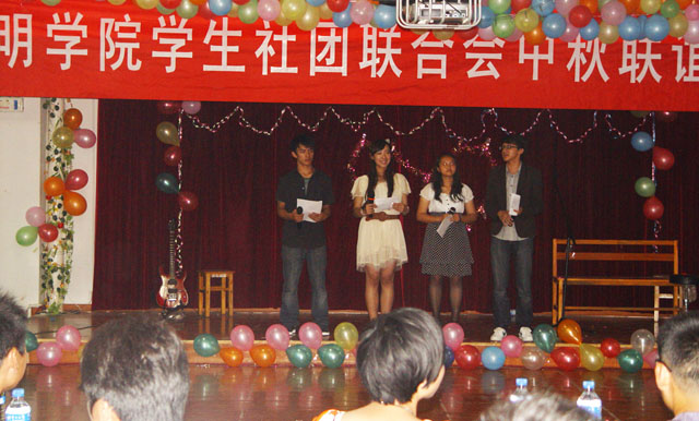 同学们为本次活动布置了温馨的会场,购买了丰盛的小食品,编排了精彩的节目。在乐队充满激情的演奏中,中秋联谊晚会拉开了序幕。社团联合会的新老干部同台竞技,共庆中秋佳节。精彩的节目活跃了晚会的气氛,节目中除了富有特色的民族歌舞外,还有热情的街舞,让人捧腹的相声和搞笑的游戏。最后在场师生同唱《真心英雄》更是把晚会推向了高潮,歌曲真挚地表达了学生社团联合会全体成员要把我院社团工作做得更好的决心。