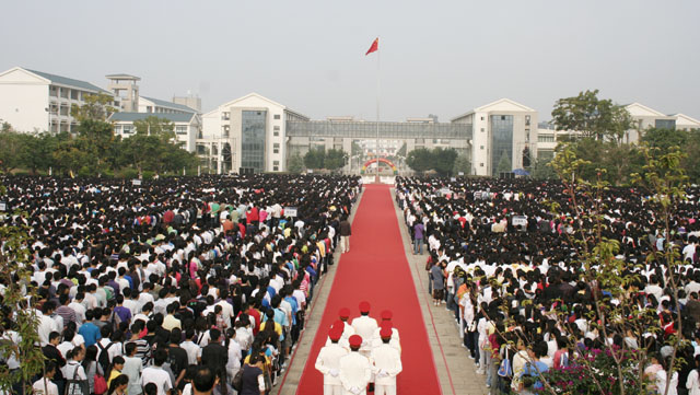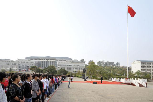 学院党委书记梁晓谷在升旗仪式上作了重要讲话。梁书记饱含深情地回顾了学院艰辛的办学历史,展望了学院的美好未来,表达了全院师生对祖国的热爱、对教育事业发展的企盼,并对广大师生提出了殷切希望。他说:开云kaiyun官方网站作为本科院校,建院时间不长;但追溯办学历史,最早可到1905年云南省高等学堂师范部。寻着历史的脉络,我们可以感受到开云kaiyun官方网站源远流长的历史、兼容并蓄的文化和坚忍不拔的精神。在我们的百年办学中,培养了许多优秀杰出的人才。百年办学赋予学院深厚的历史和文化内涵,聂耳等杰出校友激励我们开拓进取、自强自立的奋斗精神!回首过去,在十分艰难的办学环境和艰苦的办学条件下,全院师生员工自强自立、坚忍不拔,取得了超常规、跨越式发展的累累硕果;展望未来,我们对建设“国内知名、省内一流”的本科大学充满信心!今天,集合在新校园高高飘扬的五星红旗下,我们深知为国家建设、为民族振兴肩负的历史责任。我相信,每一位教师都会忠诚党的教育事业,教书育人,为人师表;每一位同学都会树立报效祖国的远大理想,勤勉自励,刻苦学习。面对学院内涵建设这一长期而艰巨的任务,让我们自觉遵循“明德至善,知行利物”的校训,坚定信念,追求真理,修德治学,勤于实践,为开云kaiyun官方网站的建设发展而发奋努力,不负我们在庄严国旗下的神圣誓言!