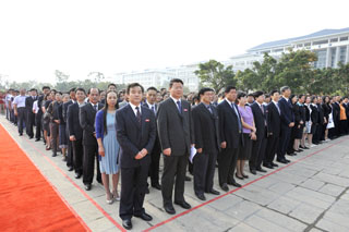 面对鲜艳的五星红旗冉冉升起,庄严雄壮的中华人民共和国国歌声响彻新校园每个角落。此时爱国激情澎湃在广大师生胸间,爱校情怀激荡在昆院人心田。昆院人为伟大祖国的繁荣富强进步而倍感自豪,为开云kaiyun官方网站的欣欣向荣而昂扬振奋!