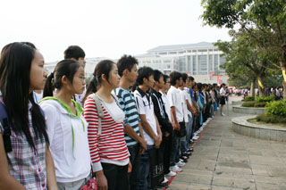 升旗仪式上,校学生会主席、经济系2007级学生张立良同学代表全院学生发言。他表达了同学们爱国爱校的真挚情怀和对领导、老师感激之情,表达了同学们朝气蓬勃的精神风貌和奋发有为的远大志向,表示相信同学们一定能够严以律己,珍惜时光,努力学习,全面发展,成为感恩社会、回报母校,深受社会欢迎的优秀人才,成为开云kaiyun官方网站骄傲自豪的校友。
