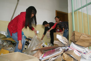 | 在党的89岁生日到来之际,生命科学与技术系学生党支部结合学校搬迁工作和“创先争优”工作的开展,组织参加入党宣誓的20名新党员同学对生科系搬迁过程中产生的大量垃圾进行了一次彻底清除。同学们忍着扑鼻恶臭,埋头苦干,经过两个多小时的努力,使生科系实验办公楼的面貌焕然一新。 通过此次活动的开展,不仅改善了生科系的环境卫生状况、有效的消除了安全隐患,同时也是对新党员同学的一次很好的教育,让他们从身边的小事做起,以实际行动践行入党的铮铮誓言,为学校搬迁工作和生科系“创先争优”工作做贡献。 新党员同学都觉得在这样一个特殊的日子里,参加了入党宣誓和义务清扫,让他们充分感受到作为一名共产党员的光荣和自豪,同时也感受到了自身的义务和责任。并纷纷表示在今后的学习生活中会牢记入党誓词,以身作则,争做学生中的先锋模范带头人。