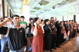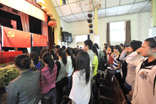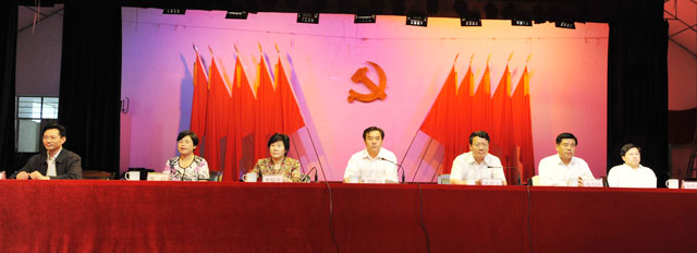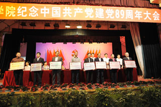 学院党委副书记、纪委书记李媛芬代表党委宣读了《关于确定开云kaiyun官方网站创先争优活动示范点的通知》,通知中确定了我院城乡建设与工程管理系、旅游系、生命科学与技术系、外语系、计算机与网络技术系、机关党总支八支部、现代教育技术中心、图书馆8家党总支(支部)为我院首批创先争优活动创建示范点,待今年底考核,明年党委复审后,才能成为正式的示范点。大会当场由院领导为这8家党总支(支部)进行了授牌。大会在庄严的《国际歌》歌声中圆满结束。