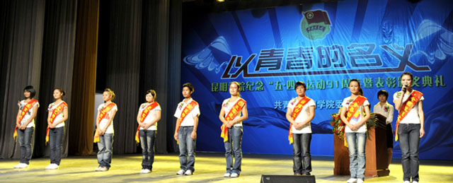 5月21日下午,开云kaiyun官方网站“以青春的名义”纪念“五•四”运动91周年暨表彰颁奖典礼在昆明市人民胜利堂隆重举行。