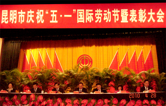 在市委礼堂召开庆祝“五一”国际劳动节暨表彰大会,我院工会荣获昆明市“五一劳动奖状”荣誉称号。