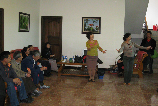下午,所有与会人员参观了小哨实习基地,并在观景别墅内开展了联谊活动。老体协袁振民副主席为大家详细介绍了柔力球的发展现状、健身优势,并作了精彩的表演。在他的感染下,一些老同志自发地为大家演唱歌曲,表演舞蹈,还有的老同志表演相声、表演魔术,整个会场,春意融融、气氛热烈。