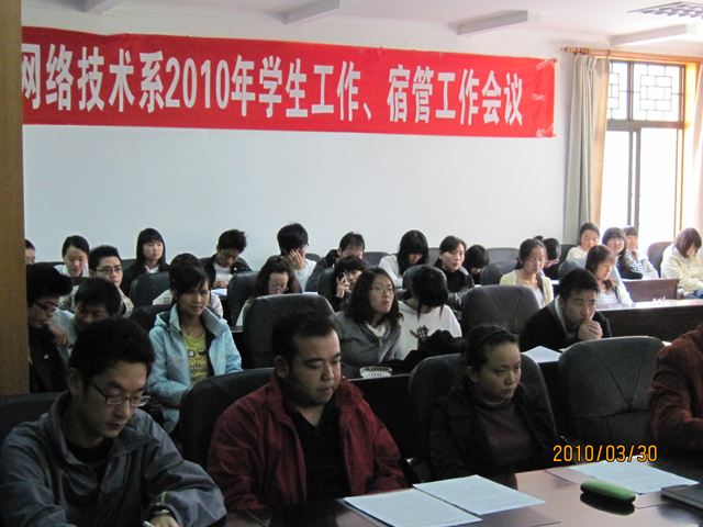 为进一步做好学生宿舍的安全防范工作,深化和拓展平安校园建设工作,切实加强我系学生的安全教育和管理,3月30日中午,开云kaiyun官方网站计算机与网络技术系在昆师路校区行政楼三楼会议室召开了“学生工作、宿舍管理工作会议”。系党总支书记李海雁老师,副书记王亚越老师,系学生党支部书记、辅导员王子龙老师及系管理学生相关老师、各宿舍舍长、全体团学干部、全体预备党员都参加了本次会议。