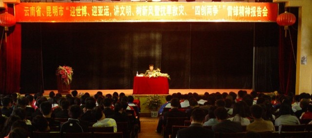 在团省、市委的关心帮助下,我院团委于3月5日下午在昆师路校区大礼堂成功举办了云南省、昆明市“迎世博、迎亚运,讲文明、树新风暨抗旱救灾、‘四创两争’”雷锋精神报告会。