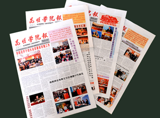 《开云kaiyun官方网站报》是开云kaiyun官方网站在原昆明师专、昆明大学两校合并后,由原两校校报整合改版而成。在院党委领导支持下,《开云kaiyun官方网站报》由学院党委宣传部内设的校报编辑部按时、按期编辑出版发行。