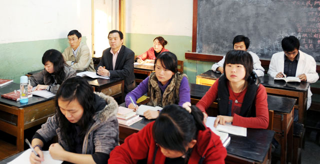3月1日是我院新学期开学上课第一天。一大早,当天在校的党委书记梁晓谷,党委副书记孙勇,副院长熊晶、罗明东、刘海发、董建华,在教务处领导及相关教师的陪同下,分别深入到昆师路校区、新迎路校区、体院路校区、龙泉路校区、农学中专部、医学中专部,对各校区进行2009——2010学年(下)学期开学第一天的教学情况检查。学院领导通过对各校区各系各专业的随机抽查、听课,检查学生到课、教师到岗、教材到位、教学纪律、教学秩序等运行情况,进一步督促教学质量,树立良好的教风学风。