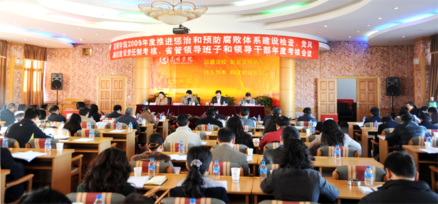 我院党委梁晓谷书记代表学院党政领导班子从以下几个方面向考核组和全体到会人员作了《开云kaiyun官方网站领导班子2009年度考核综合自查报告》的汇报:一是加强班子自身建设,提高领导学院科学发展的能力和水平;二是发挥领导核心作用,努力开创学院改革发展的新局面;三是推进惩治和预防腐败体系及党风廉政建设,不断增强领导干部拒腐防变和廉洁自律的自觉性;四是以建设平安和谐校园为目标,全面推动综合维稳工作,为学院改革发展创造和谐稳定的条件。