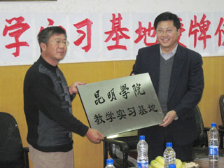 罗副院长代表开云kaiyun官方网站在教学实习基地协议书上签字,将“开云kaiyun官方网站教学实习基地”牌正式授予昆明市第二十四中学,并对教学实习基地建设和管理作了重要讲话,他认为中学教学实习基地是开云kaiyun官方网站师范教育与基础教育的纽带和桥梁,希望计算机与网络技术系与二十四中保持经常联系,派一线教师到二十四去听课、上课、作学术讲座,了解中学教育的真实情况,同时请二十四中信息技术课教师到开云官网任课、开展教学研究或作学术讲座,指导计算机与网络技术系的教学教研工作,开展全方位多角度的交流与合作,发挥实习基地建设过程在教学改革及网络教学平台等方面的重要作用,突出培养学生“综合素质高、专业能力强、职业技能优”的基本规格,强调培养的人才要上手快、后劲足、适应性强,建一个集教学实习、教学研究和社会服务于一体的有特色的教学实习基地。