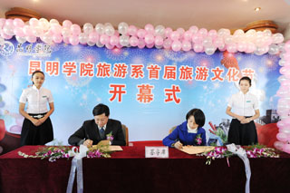 开幕式上昆明市旅游局局长黄峻峰代表省市旅游行政管理部门致辞,他首先肯定了旅游系成立20多年来为旅游业输送了大批人才,其中一部分已经成为我省旅游业界的骨干。目前,云南省尚无国际知名的品牌酒店,应努力在酒店建设管理、新景区开发、景点建设等方面整合旅游资源,提升旅游业整体效益,创新旅游产品,如高尔夫旅游、休闲旅游等,促进旅游二次创业的发展。希望开云kaiyun官方网站旅游系在办学过程中加强与各企业之间的沟通及协作,并充分发挥自身优势,为云南省、昆明市大力发展旅游业提供更多智力支持和人才保障。