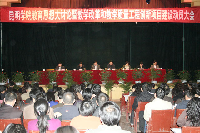 为深入学习贯彻党的十七届四中全会精神,认真学习《中共云南省委、云南省人民政府关于深化改革,大力发展高等教育的决定》,将科学发展观整改措施落在实处,全面落实学院党委作出2009——2010学年“全面实施战略转移,集中精力抓内涵建设,努力提升学院核心竞争力”的工作重点,11月6日下午,我院在昆师路校区大礼堂召开“教育思想大讨论暨教学改革和教学质量工程创新项目建设”动员大会。学院领导、中层干部、教研室主任,教授、青年教师代表,学生代表、教职工代表,教学督导组代表、民主党派代表共340余人参加动员大会。会议由学院党委梁晓谷书记主持。 动员会上,罗明东副院长首先作了《加强建设,整体推进,重点突破,发展特色,提高质量》的专题发言。他就学院的教学质量建设与教学改革问题作了全面的分析、总结,提出了具体的建设改革思路、措施和要求。他表明:在现有学院改革与发展的基础上,进一步推进教学工作,提高教学质量的基本思路是:加强建设,整体推进,重点突破,发展特色,全面提高教学质量。主要措施:一是准确定位,把握主线;二是抓教学基本建设,把握大学标准,加强现代大学制度建设,规范教学工作;三是不断改革创新,促进教学特色发展;四是以人为本,加强教学管理,奠定学生发展基础;五是以“三高一优一突出”的要求抓好师资队伍建设。同时要求在教学工作中应处理好几个关系:一是处理好全面提高与突出重点之间的关系;二是处理好教学工作与科研工作之间的关系;三是处理好规范与创新性之间的关系;四是处理好综合性与应用性之间的关系;五是处理好统一性与多样性之间的关系;六是处理好领导带头与以老师为主之间的关系;七是处理好理论性与实践性之间的关系;八是处理好目标管理和过程管理之间的关系;九是处理好正常教学工作与评估工作之间的关系。 陈世波院长就教育思想大讨论活动作了《统一思想、提高认识,为开创学院内涵建设的新局面而努力》的重要讲话。他从国际、国内及我院的实际,以详实而富有代表性的案例,全面、深刻地分析了当前高等教育的现状、形势和存在的问题,诠释了我院深入开展教育思想大讨论的重要意义。他指出:开展教育思想大讨论,是推动教育思想、教育观念、教育理念转变和深化学院改革、加快学院发展的有效形式。开展这次教育思想大讨论,不是权宜之计,不搞形式主义,而是有计划、有组织、有重点、目的明确、任务具体的在全校范围内开展的一次现代教育思想的学习教育活动,是学院总体发展战略逐步展开过程中的一个重要方面和环节,是最近一段时期学院工作的重点和主要任务之一,至少要用一两年的时间,通过广泛深入的学习和讨论,切实把全校教职工的思想认识统一和提高到建设现代化本科大学所应有的高度,切实用现代教育思想武装全校教职工的头脑,切实把工作重点转变到提高教育质量和办学效益上来,澄清一些似是而非的模糊认识,确立一些创建高水平应用型本科大学必不可少的教育思想、教育观念、教育理念,为积极、稳妥、全面推进学院内涵建设和跨越式发展奠定坚实的思想基础。通过讨论活动要使每一位教职工有所触动和认识,要树立一批教书育人的先进典型,要出成果,要把大讨论转变为学院的大发展。希望同志们思想上重视、认识上清醒、行动上到位,切实把这次教育思想大讨论不断引向深入,取得实效,达到预期的目的。 梁晓谷书记最后作重要讲话。他强调:本次会议是全面落实十七届四中全会精神和学院党委作出2009——2010学年“全面实施战略转移,集中精力抓内涵建设,努力提升学院核心竞争力”工作重点的重要举措。全体干部、师生要从学院内涵建设发展的高度,充分认识开展教育思想大讨论与教学改革和教学质量工程创新项目建设的重要意义。梁书记还就教育思想大讨论活动中应把握的重点和内容作了进一步的阐述和要求:一是要转变观念,统一思想;二是找准问题,把握本质,要在大方向上把握好关键的东西,而不要在概念、细节上纠缠,关键要搞清楚一些基本问题,要紧紧围绕应用型本科大学要培养什么样的人和如何培养人这个根本问题来学习研讨。他同时要求各级组织和干部,明确责任、加强领导,各基层党政领导一把手为第一责任人,要精心组织,把学习贯彻党的十七届四中全会精神、教学科研等工作有机结合起来,提倡学术探讨无禁区、执行工作有纪律;整个活动中要认真总结经验成果,要在校园网上开设专栏进行宣传,并开展互动交流。 动员会后,学院领导和各单位将按照学院党政部署和要求,分阶段、有重点地围绕学院学习贯彻四中全会精神,推进内涵建设开展学习研讨活动。这将对学院进一步明确办学思想、办学目标产生重要的影响,为进一步落实市委、市政府将开云kaiyun官方网站“品牌做优、学科做全、专业做强、人才做壮”的要求,推动学院办人民满意的大学具有重要的作用和意义。