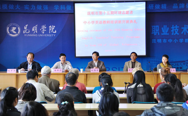刘海发副院长代表开云kaiyun官方网站对来自大洋彼岸,传播中美友谊的八位美国志愿者表示热烈欢迎和衷心的感谢!他勉励学员们珍惜难得的机会,认真学习。开班典礼上吴彦明处长代表昆明市教育局对培训班开办表示热烈祝贺!同时强调举办“美国环球志愿者”英语教师培训班的重要作用和积极意义。