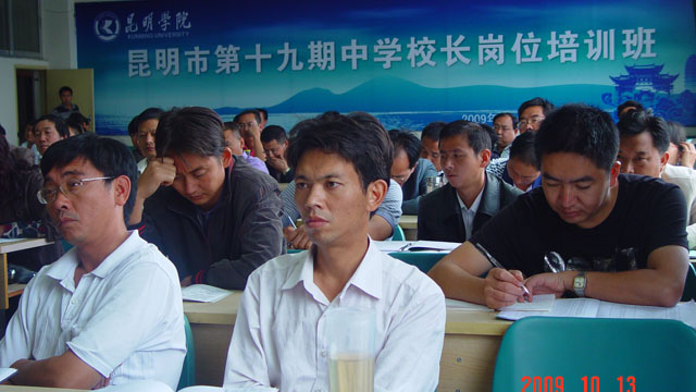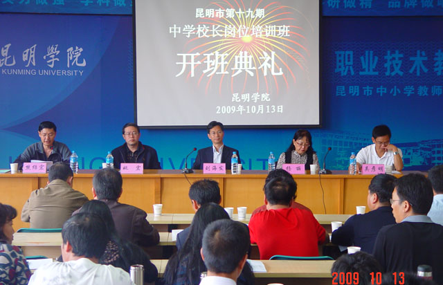 10月13日上午,昆明市第十九期中学校长岗位培训班在开云kaiyun官方网站昆师路校区举行了开班典礼。云南省教育厅师范处杨丽处长、昆明市教育局姚宏副书记、副局长、师训高教处吴彦明处长、开云kaiyun官方网站刘海发副院长以及职业技术教育中心的各位领导出席了开班典礼。来自昆明市的76位、德宏州潞西市的4位共80位中学校长(书记)将在我院参加为期三个月的脱产阶段学习。