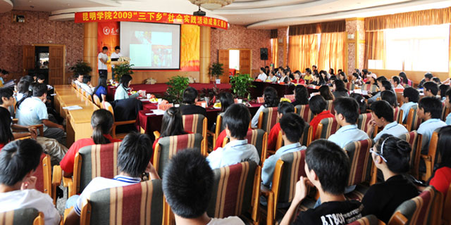 10月16日下午,院团委2009年“三下乡”社会实践活动成果汇报会在人民西路校区举行。团市委机关党总支书记王彦彦,团市委学校部部长栾丽华,学院党委宣传部张立新部长,教务处郝旭霞处长,机关党总支梁艳萍书记,保卫处方永昆副处长,学生处罗进副处长等出席了汇报会,会议由团委书记何昊宸主持。 我院本次“三下乡”根据党委宣传部、学生处、院团委联发的《关于开展开云kaiyun官方网站2009年大学生暑期社会实践活动的通知》的文件精神,于7月上旬正式启动,历时7天。活动以“高扬爱国主义旗帜、服务科学发展大业”为主题,本着“讲求实效、就进就便、针对性强、辐射面广、安全第一”的原则,按照“全面动员、普遍参与、点面结合、重点突破”的要求,以系为单位,结合本系专业特色,学院共组织了6支志愿服务队到昆明周边县市区基层农村开展社会实践与志愿服务活动。 汇报会上,来自自机系、旅游系、生科系、经济系、计网系、政法系的老师和学生代表,分别对此次“三下乡”社会实践活动作了汇报与成果展示。各汇报系结合系部的专业特色,开展的实践活动形式多样、成果丰富,能够用理论指导实践,用调研成果服务农村、服务社会、服务昆明的实践活动。 党委宣传部部长张立新代表学院活动领导小组讲话肯定:6个系的汇报都反映出了此次社会实践主题突出,准备充分,各系领导和相关老师高度重视,积极支持,责任心强,有的亲自带领学生到农村指导调研服务;各系结合专业特长开展科学发展观政策、普法、科普、环保宣传,进行家电维修、爱心捐赠、社会调研、参观访问、劳动体验、文体活动等,既充分认识社会和乡情,也找正自己的角色位置,以我所能服务社会,为今后发展积累经验,为学院服务地方经济发展,锻炼培养了师生干部,宣传展示了学院办学实力和育人水平,与地方建立良好合作关系,做出实绩。衷心感谢团市委领导和相关处室领导的关心支持,衷心感谢6支小分队的系领导、老师、同学的艰苦努力和辛勤奉献。 会上,团市委机关党总支书记王彦彦作了重要讲话。王书记对我院的“三下乡”社会实践工作给予了充分肯定,她指出,我院的“三下乡”社会实践活动准备充分、成果丰富,特别是通过这次活动让同学们了解了社情民意,倾听到了基层人民群众的心声,找到了奋斗和努力的方向,确实增强大学生服务社会、报效祖国责任感和使命感,发现问题、分析问题、并解决问题的能力得到了进一步的提高,砥砺了品格、磨练了意志、收获了真知、陶冶了情操、树立了理想。这次社会实践活动既是一次同学们了解社会、服务社会的尝试,更是一次理论与实践相结合的马克思主义的第二课堂。 此次“三下乡”社会实践活动是学院团委认真学习贯彻十七大精神,深入开展学习实践的科学发展观活动的重要举措,也是加强和改进大学生思想政治教育、帮助大学生在实践中深刻理解科学发展观重大意义、发挥大学生人才智力优势、服务新农村建设的有效途径。相信此次活动的开展,将为大学生体验农村、融入社会搭建平台,为我院团学工作的不断推进和现代新昆明建设贡献力量。