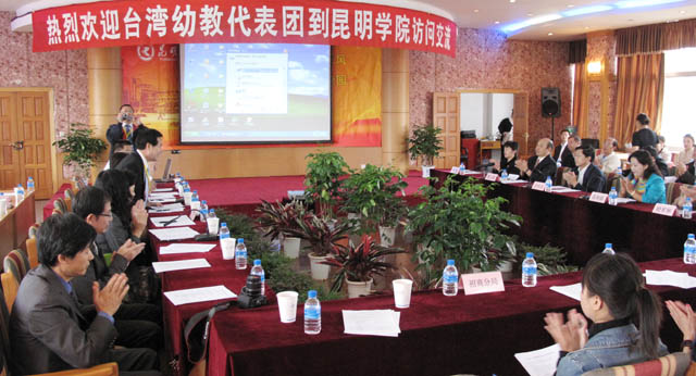 研讨会由昆明市台办主任段俐娟主持。昆明市教育局领导发言首先对台湾幼教联合总会的到来表示诚挚的欢迎,然后就昆明的教育大背景作了较详细的介绍。接着开云kaiyun官方网站罗明东副院长对开云kaiyun官方网站的建院情况,院系专业设置,未来发展方向,特别是学前教育系的发展做了重要发言。学前教育系领导唐敏副主任主要针对开云kaiyun官方网站学前教育系的办学历史、专业特色、科研能力、与昆明市各幼教机构的合作等台湾同行们感兴趣的问题,作了深入而细致的介绍。同时台湾幼教联合总会涂会长也把台湾的幼教发展现状等信息作了交流。