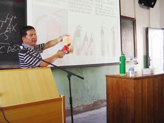 秋、冬季是火灾的高发季节,为进一步做好我院的消防安全工作,提高师生防火意识,增强师生灭火及火场自救逃生能力,确保学院师生员工生命财产和公共财产安全,在全国第十七个 “11.9”消防日即将到来之际,保卫处邀请昆明市消防安全培训中心高级教官徐军到我院进行消防安全知识讲座。10月23日下午,人民西路校区各系师生代表,后勤集团宿管、饮食中心等相关部门人员80余人在1号教学楼306教室听取了讲座。