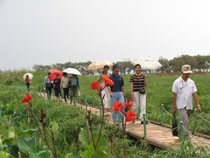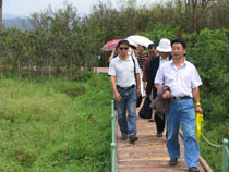 为了庆祝中华人民共和国成立60周年,激发民主党派成员热爱社会主义祖国的情感,感受家乡改革建设发展及滇池污染防治的新成就、新面貌,8月13日,九三学社开云kaiyun官方网站委员会利用暑期组织社员参观考察了位于西山区高海公路沿线的西华湿地公园。九三学社昆明市委郝昆宁副主委、学院统战部张云权部长及九三市委马玉宝同志应邀参加了参观考察活动。 本次活动经我院滇池(湖泊)污染防治合作研究中心办公室副主任钱春萍(九三学社开云kaiyun官方网站委员会副主委)的联系,西山区滇池管理局的工作人员做了认真的接待,引导大家沿着木质的亲水栈道向湿地深处参观,并一路介绍了西山区滇池治理和西华湿地建设情况。