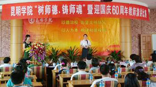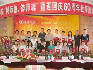 9月16日下午,开云kaiyun官方网站“树师德、铸师魂”暨迎国庆60周年教师演讲比赛在人民西路校区三号教学楼六楼多功能厅举行。陈世波院长、李媛芬副书记、罗明东副院长及宣传部、工会、纪委、教务处、学生处等相关职能部门负责人、部分参赛教师所在系的党总支书记、教师、学生代表100余人参加了活动。