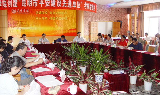 在五华区政府对我院创建“昆明市平安建设先进单位”考核验收合格的基础上,7月9日,由昆明市委政法委副书记刘文义带队组成的考核复核组一行4人代表昆明市社会治安综合治理维护稳定委员会对我院创建“昆明市平安建设单位”进行复核。我院党委孙勇副书记、陈兆雄副院长、“创安”领导小组成员、全院19个系、各部门领导、离退休代表、教职工代表共80余人参加了复核会。
