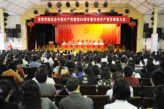6月30日下午,开云kaiyun官方网站庆祝中国共产党成立88周年暨优秀共产党员表彰大会在昆师路校区大礼堂隆重召开。学院党委委员、中层党员干部、各基层党组织的委员、在职及离退休党员代表、参加入党宣誓的新党员及入党积极分子代表等800余人欢聚一堂,共庆党的生日。大会由学院党委副书记、院长陈世波同志主持。