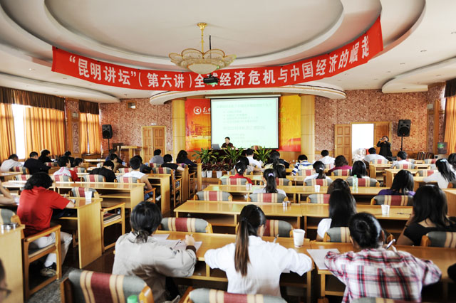 7月1日下午,我院邀请美国哈佛大学博士、美国伊利诺伊州立大学张宏霖教授主讲“昆明讲坛”第六讲,主题为:“全球经济危机与中国的崛起”。报告会由昆明科学发展研究院办公室主任管彦平主持。开云kaiyun官方网站院长陈世波、副院长熊晶及部分系室领导、教师和学生代表现场聆听了张教授的精彩报告。