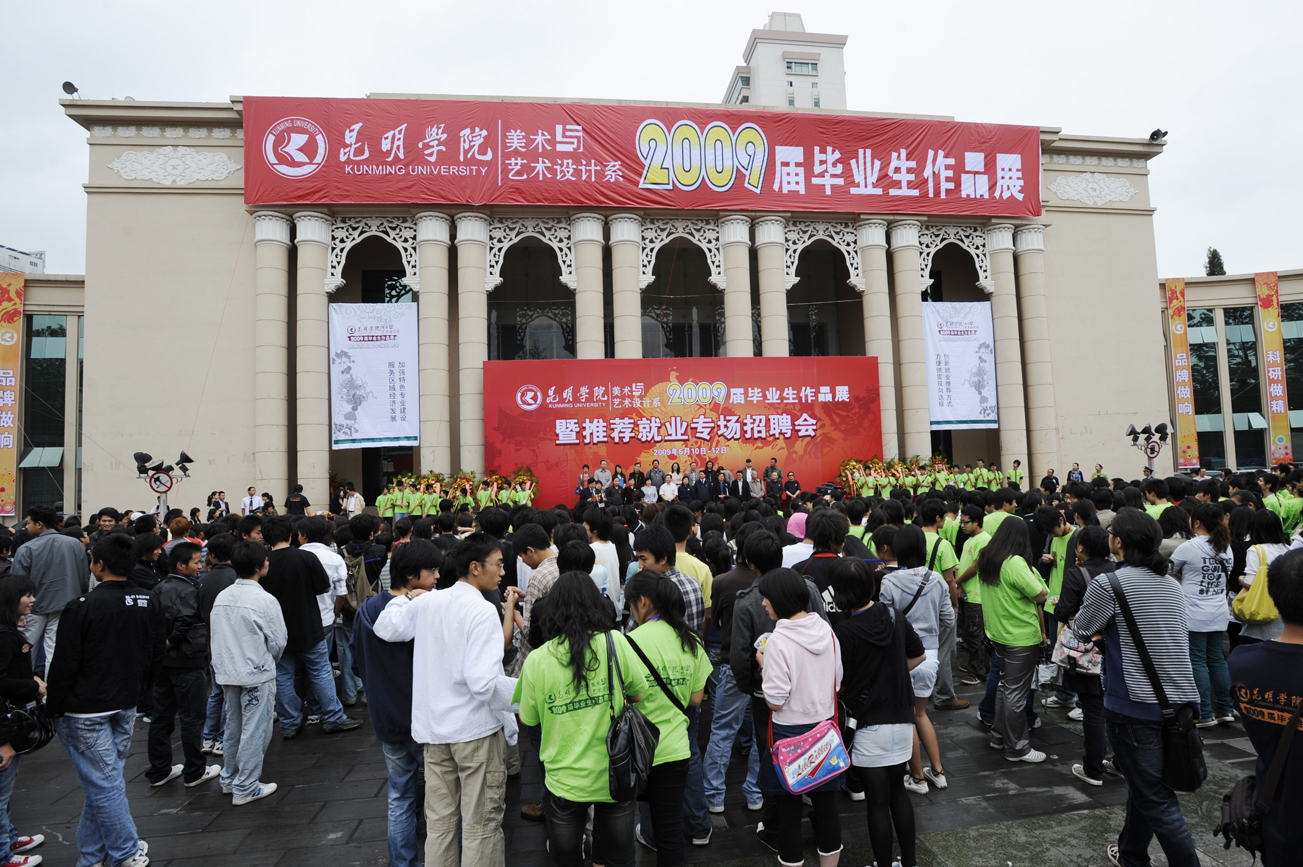 此次展览展出美术与艺术设计系09届美术教育、广告设计专业、装潢设计、艺术设计专业(环境艺术设计方向)、多媒体设计与制作专业260名毕业生共计800余件(幅、组)毕业创作、毕业设计作品。所展出的作品以其生动的形象、和谐的色彩、丰富的形式充分体现了美术与艺术设计系毕业生热爱祖国、朝气蓬勃、昂扬向上的精神风貌,同时饱含了学生鲜活的艺术激情、旺盛的艺术创造力和丰富的艺术想象力,作品洋溢着学生对生活的热爱、对社会的强烈的使命感、以及对人生价值的关注和思考。展出的作品还初步显现美术与艺术设计系整合组建以来积极实践“加强特色专业建设、服务区域经济发展”教学成果。作品全面涉及到表现云南民族元素的绘画作品、独具地方特色的产品设计、包装、广告、视觉符号、环境规划、公共空间、数字艺术、多媒体视频、旅游产品开发等艺术形式。 展会当天,佳园装饰公司、万特龙展览公司、震撼广告等117家装饰公司、广告企业、、园林规划、相关企业和中小学单位提供300多个就业岗位参会进行现场招聘。据不完全统计,本届“展会”美术与艺术设计系09届毕业生现场签约率高达50%左右。 新闻媒体广泛评论:开云kaiyun官方网站美术与艺术设计系针对专业特点,采取“毕业生作品展与专场招聘会”相结合的形式,为毕业生和用人单位营造了一个“供需见面,双向选择”的平台:用人单位通过观看展览,从学生毕业作品中直观了解学生所具备的专业素质和能力,从而选择招聘适合本企业人才规格的毕业生。这种创新的毕业生就业推荐形式必将取得了较好的成效。
