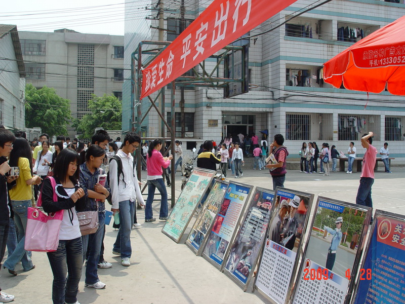 为认真贯彻落实云南省教育厅“关于2009年道路交通事故预防工作意见的通知”文件精神,进一步增强我院师生员工的道路交通安全意识,确保师生员工的生命财产安全。“五.一”节前夕,保卫处结合学习实践科学发展观活动的要求,针对师生交通出行安全问题,分别在五个校区组织开展了“道路交通安全知识图片展”。