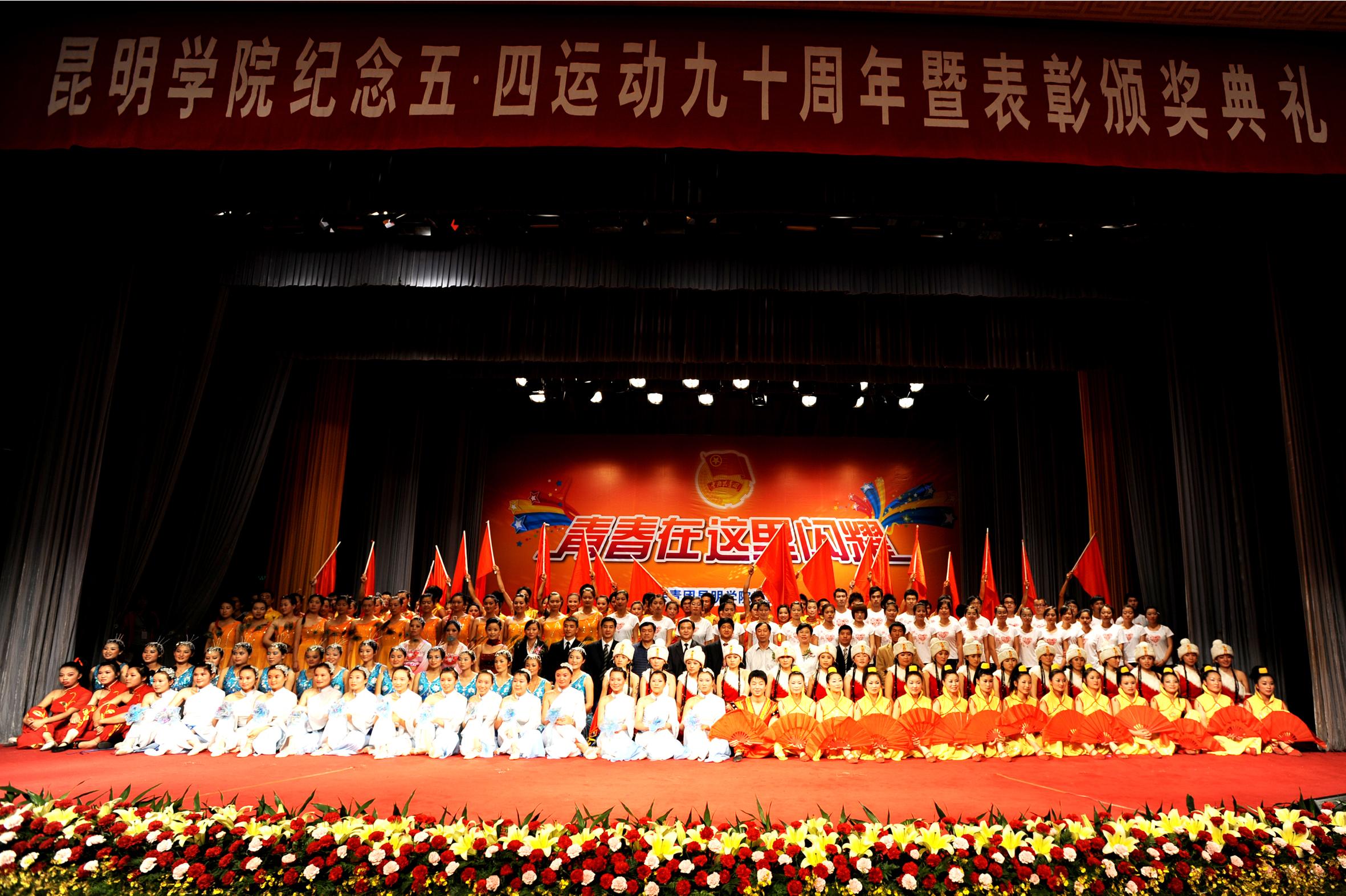 表彰会后,院领导、嘉宾登台与演职人员合影留念,开云kaiyun官方网站“青春在这里闪耀”纪念“五· 四”运动90周年暨表彰颁奖典礼圆满结束。
