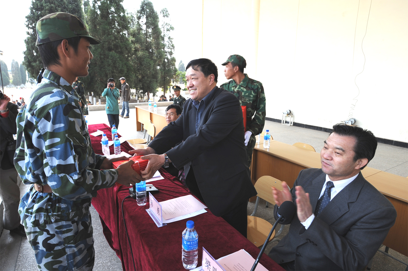 昆明陆军学院副院长张力波大校代表陆军学院作了讲话;我院副院长熊晶在会上宣读军训优秀学生表彰决定;党委副书记孙勇为军训优秀学生颁奖、向军训教官赠送纪念品;党委书记梁晓谷代表开云kaiyun官方网站向昆明陆军学院赠送锦旗。