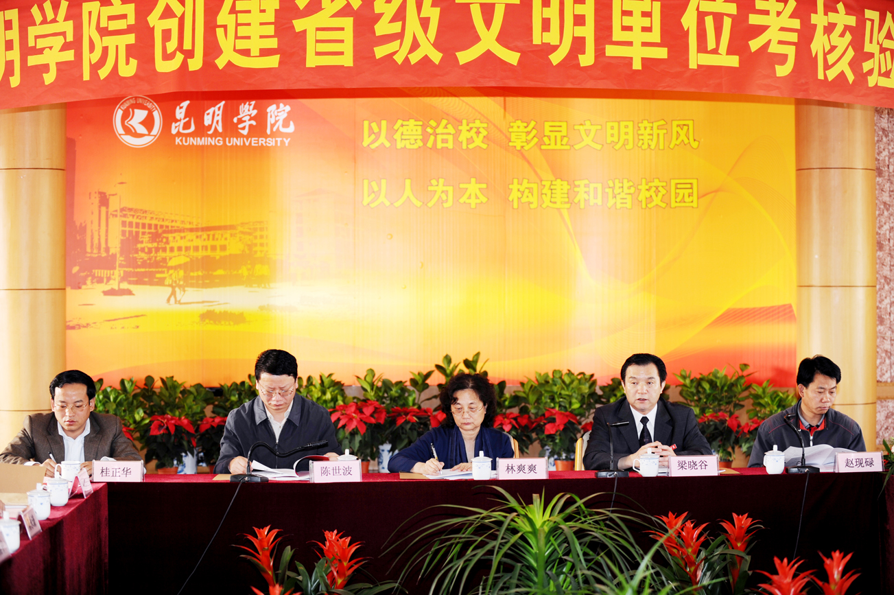 考核组组长林爽爽综合三个组的考核反馈意见作了考核总结评价,认为开云kaiyun官方网站此次创建工作领导高度重视、工作方案详细、措施具体扎实、准备充分,各考核组打分较高并给予了高度认同。林组长对开云kaiyun官方网站正式成立以来的各项工作给予了赞赏。特别强调:此次文明单位创建工作中,学院领导班子坚强,组织健全,投入力度大,成效明显。林组长还指出了开云kaiyun官方网站与地区办事处从1991年开始创办的文明市民学校,是全国文明市民学校的创源地,也是全国文明城市创建的条件之一;另外,她还认为开云kaiyun官方网站在未成年人思想道德教育基地、文明交通工程、第七届残运会志愿者、安置残疾人就业以及统战人士之家等工作很有特色,是五华区、昆明市的亮点,争取在全省推广。