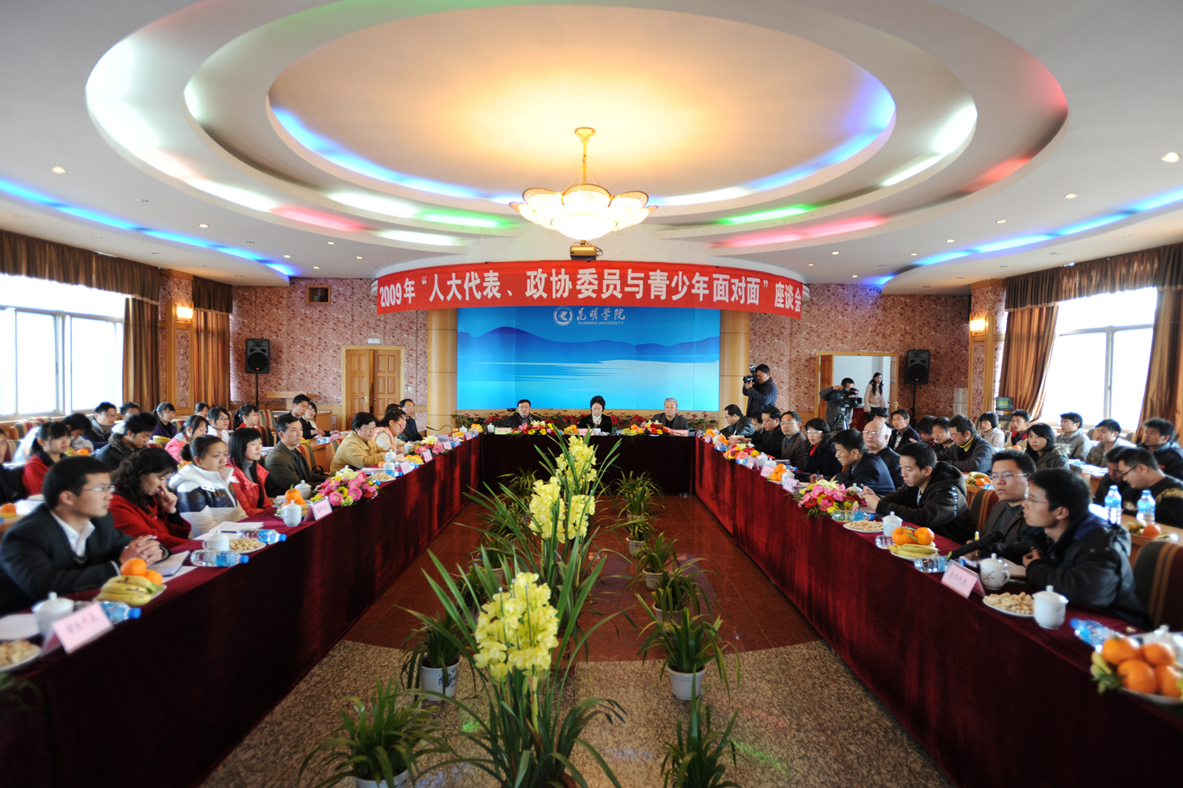 1月7日下午14点30分,由院团委举办的2009年“人大代表、政协委员与青少年面对面座谈会在学院(人民西路校区)多功能厅举行。团省委书记饶南湖、团市委副书记周乐、云南省教育厅厅长助理于达林、开云kaiyun官方网站党委副书记孙勇等省市及学院领导,8位省市人大代表、政协委员出席了此次座谈会,参加此次座谈会的还有创业青年代表及我院大学生代表。中国青年报、云南电视台等多家新闻媒体对本次活动进行了报道。