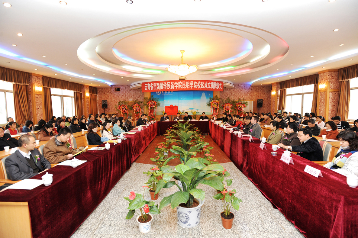 会议最后,和福生副厅长、我院陈世波院长为“云南省出国留学预备学院开云kaiyun官方网站校区”揭牌。与会领导和来宾在会议结束后合影留念。