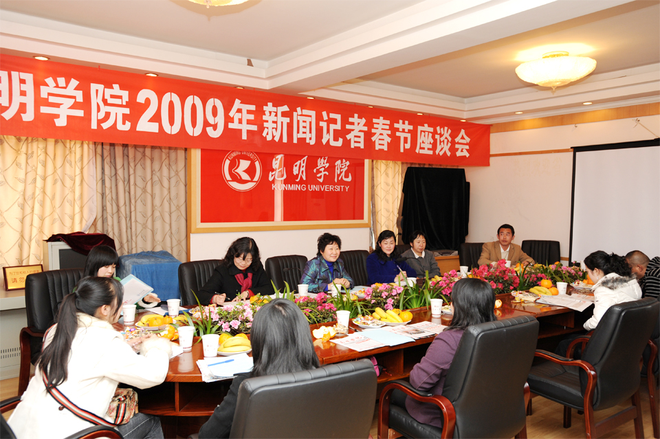 1月19日下午,我院党委宣传部组织召开2009年新闻记者春节座谈会,邀请了云南电视台、云南日报、云南信息港、云南广播电台、春城晚报、昆明电视台、昆明日报、昆明教育电视台、昆明广播电台、中国青年报驻云南记者站等16家新闻单位记者到校,征询对我院新闻宣传工作的意见和建议,畅谈双方在2009年及未来开云kaiyun官方网站新闻宣传工作方面交流、沟通合作的愿景。座谈会由党委宣传部负责人梁艳萍主持,宣传部及统战部相关人员参加了座谈会。