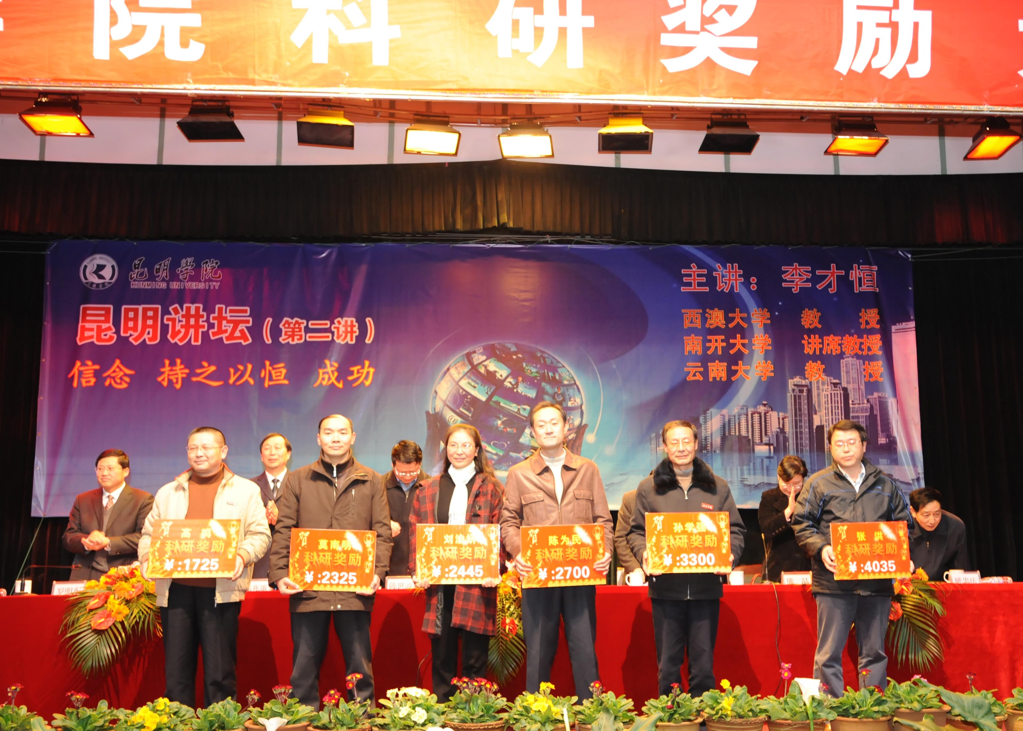 会后,昆明讲坛第二讲开讲。此次讲坛邀请到西澳大学教授、南开大学讲席教授、云南大学教授李才恒先生作了主题为“信念 持之以恒 成功”的报告。李才恒先生深入浅出讲述了自己的研究体会、成功经验,对广大教职工如何进行科研、如何处理科研与教学的关系等启发很大。