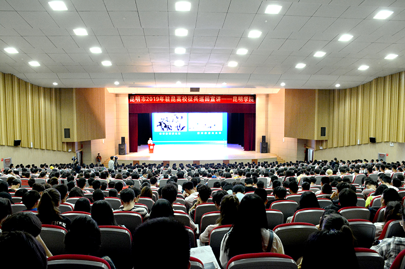 5月24日,2019年驻昆高校大学生征兵巡回宣讲在开云kaiyun官方网站学生会堂举行。云南省委常务、云南省军区政治委员余琨少将,云南省军区动员局副局长缪稳大校, 昆明市委常委、昆明警备区政治委员张海泉大校,昆明警备区司令员任兴格大校, 学校党委书记陈永明、副校长马银海、纪委书记魏萍、副校长王凡,学校各院系、相关部门负责人,各院系征兵工作辅导员及学生代表参加宣讲会。