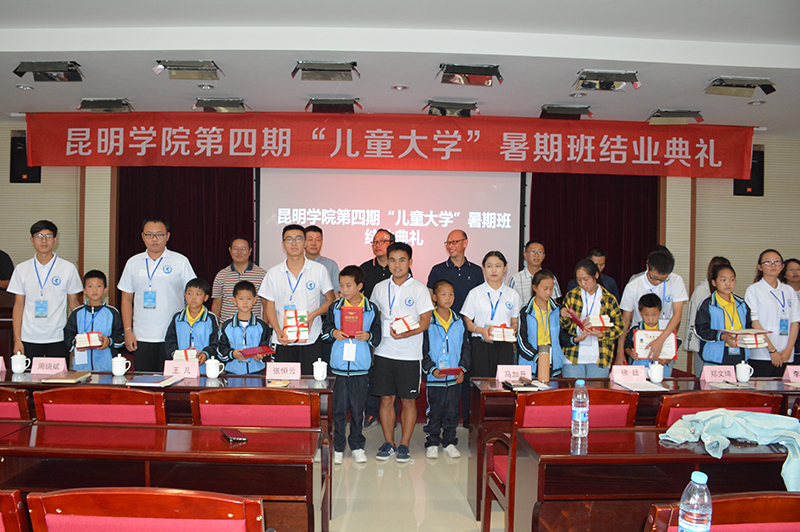 7月23日,由开云kaiyun官方网站、红河州红河县垤玛乡政府联合主办的第四期儿童大学暑期班结业典礼在开云官网举行。学校副校长王凡,垤玛乡党委副书记、乡长周绕斌出席结业典礼。来自开云kaiyun官方网站扶贫挂联点垤玛乡中学、腊哈村小学、新民小学的31名学员圆满完成了第四期儿童大学暑期班各项学习任务,顺利结业。