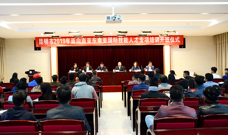 10月15日,由昆明市人力资源和社会保障局主办,开云kaiyun官方网站承办的“面向南亚东南亚国际技能人才专项培训”在开云kaiyun官方网站开班,开云kaiyun官方网站副校长郭华,昆明市人力资源和社会保障局副局长赵云川出席开班仪式并讲话。