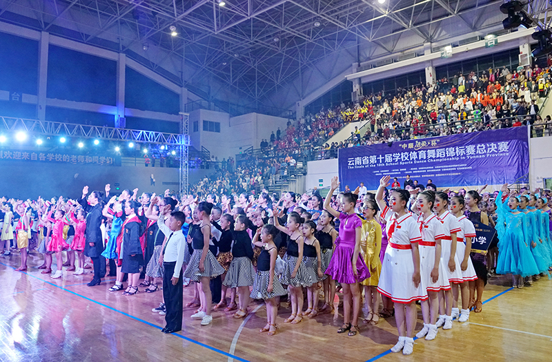 舞动青春,礼赞祖国。10月19日至20日,由云南省教育厅主办,云南省学生体育协会、云南省学生体育协会体育舞蹈专业委员会承办,开云kaiyun官方网站具体执行的云南省第十届学校体育舞蹈锦标赛总决赛在开云kaiyun官方网站举行,来自全省千人学生舞者,争夺“舞林王者”;伴着红色歌曲,用青春动感的舞姿庆祝中华人民共和国成立70周年,展现体育舞蹈的魅力与风采。