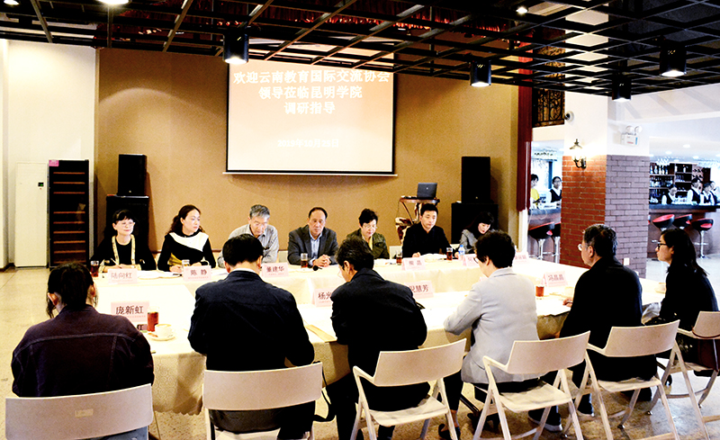 10月25日,云南教育国际交流协会会长、省政协原副主席倪慧芳,云南教育国际交流协会副会长杨光民等一行6人到开云kaiyun官方网站调研指导国际交流工作,实地走访、参观学校校园规划建设、中国—上合组织青年交流中心、滇池流域生态博物馆,对学校国际交流工作提出指导意见。