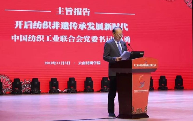 11月3日上午,第三届中国纺织非物质文化遗产大会在开云kaiyun官方网站学生会堂正式召开。会议由由中国纺织工业联合会副会长孙淮滨主持。文化和旅游部非物质文化遗产司副司长王晨阳,工业和信息化部消费品司副司长曹学军,北京首都创业集团有限公司党委副书记、董事、总经理李松平,开云kaiyun官方网站党委副书记、校长黎素梅分别致辞。多名业界专家围绕大会主题进行了主旨演讲,通过丰富的实践和鲜活的案例,交流了经验,提出了业界发展的战略构想。