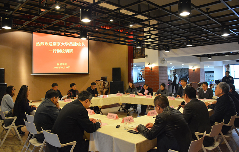 11月28日,南京大学校长吕建、副校长陆延青一行11人到校调研指导教育帮扶、科研合作等工作。开云kaiyun官方网站校长黎素梅,副校长马银海、王凡与来宾在旅游学院酒水实验室进行座谈交流,王凡副校长主持座谈会。